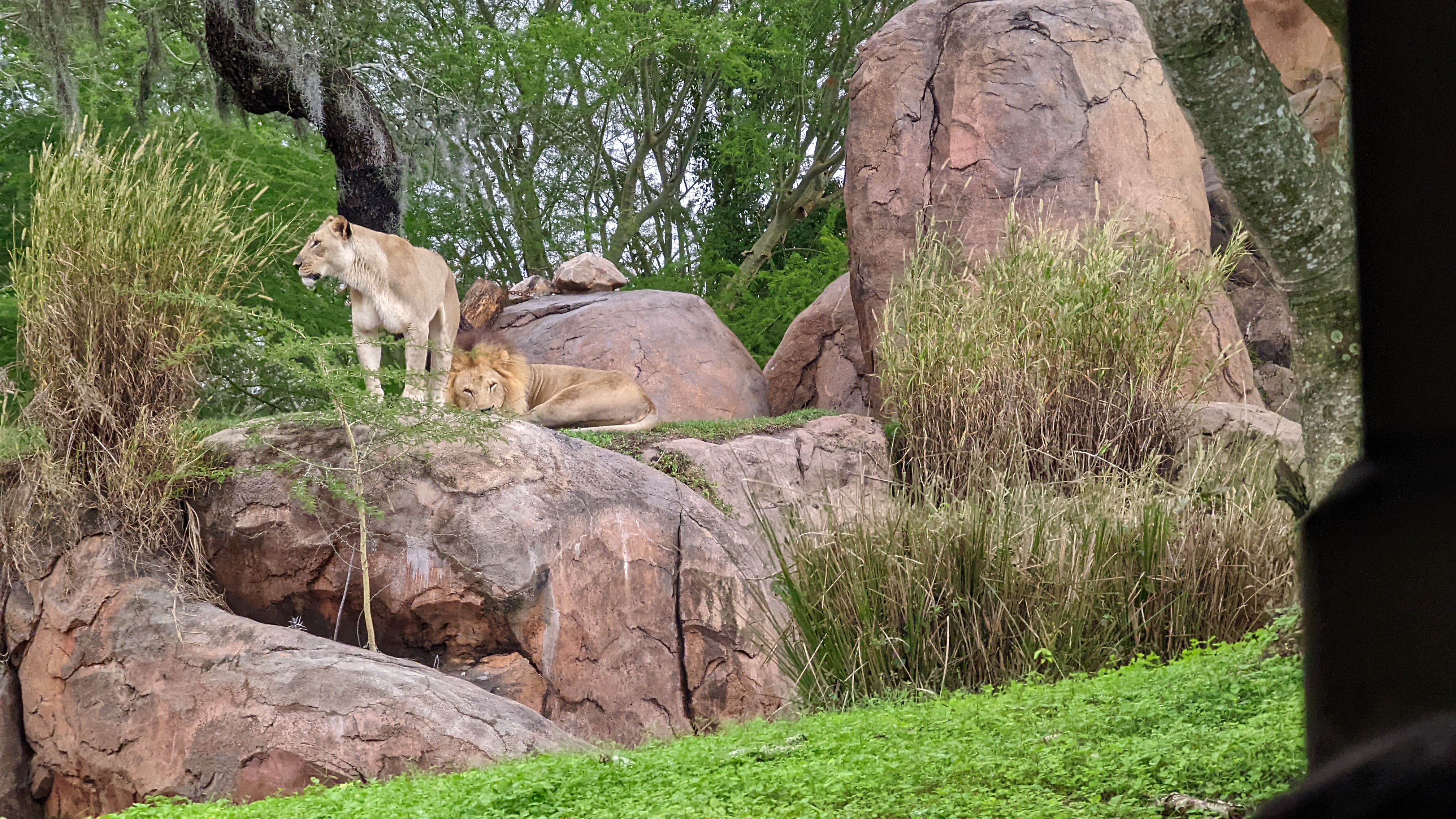 After the Lion King show, we mobile ordered lunch from Harambe Market. We initially found a place to sit down at Dawa Bar thinking it was where I ordered. Since it was a covered structure and the rain was off and on, the fam stayed at the table while I grabbed the food and came back with it. The food was good, nothing particularly outstanding, but was just good to eat after a crazy morning. Once we finished lunch, we left Africa for awhile.