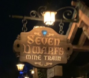 After the fireworks, we grabbed snacks and waited around for my Seven Dwarfs Mine Train Lightning Lane time. It took about 10 minutes to get to the front of the line. I hopped in the ride vehicle and bam, ride goes down. They kicked us out of the ride vehicles and had us standby as they cycled all the trains through. It took about 15-20 minutes, but I was finally able to take the ride. I love going through the mine and seeing the characters hard at work.