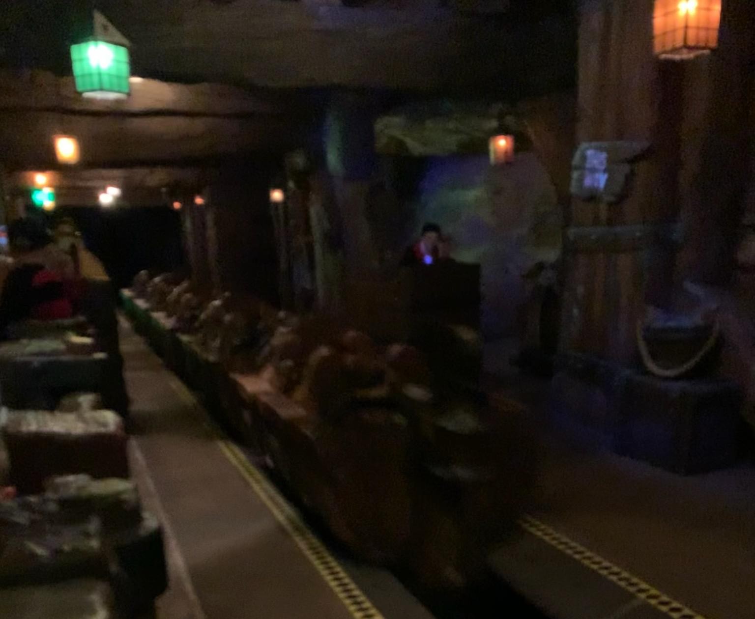 When we arrived at Peter Pan, our arrival time and grace period had already expired. I talked to the cast member and let him know our dinner ran longer than expected and we were just now able to get there. They let us on! Yay. It’s always fun to fly over London into Neverland. I look forward to having a better 360 camera, I think it’ll be really cool to get that shot from above.