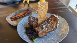 I chose the French Toast and added a side of bacon, my daughter had the brunch quesadilla, and my wife had the Egg White Frittata Bake.
